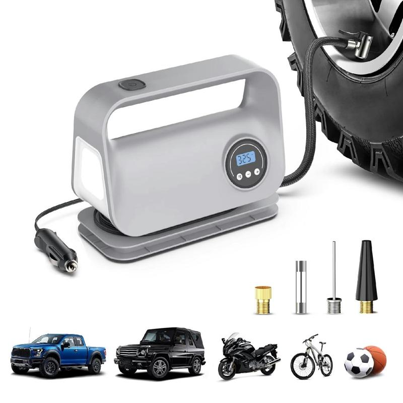 - Multifunktionel oppumpning - leveres med flere adaptere, så du nemt kan pumpe bildæk, cykeldæk, motorcykler, sportsbolde og oppusteligt udstyr.