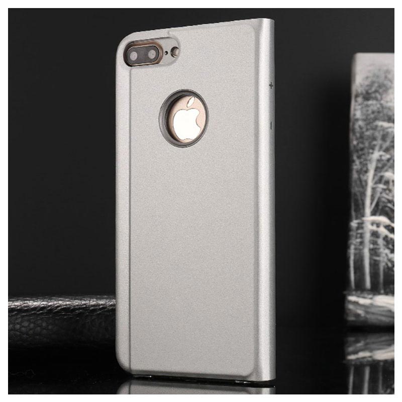 Luksus Series Mirror View iPhone 7 Plus / 8 Plus Flip Cover - Sølv