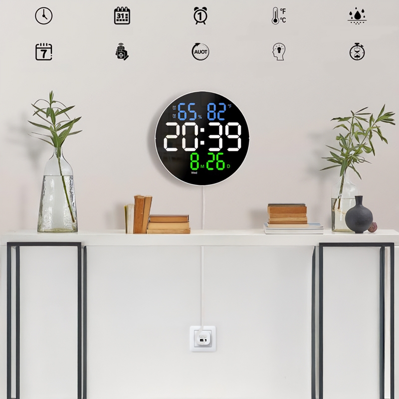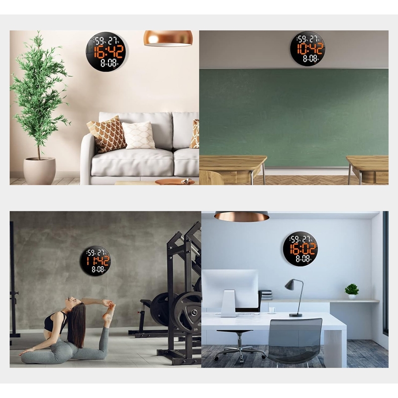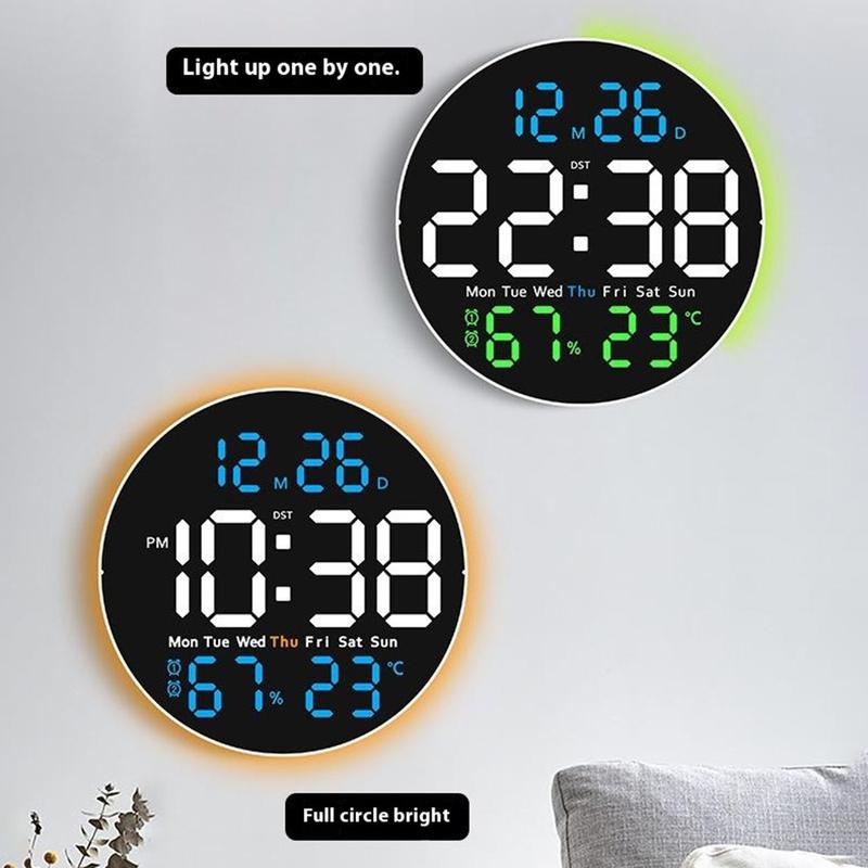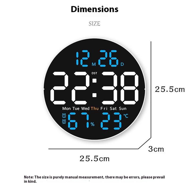6672 Lydløst Digitalt LED-Vægur 25,5 cm med Temperatur- & Fugtighedsvisning, Natlys og Fjernbetjening