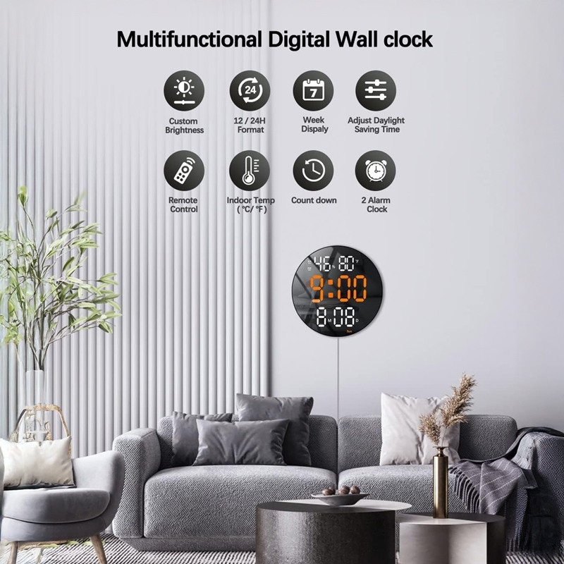 Opgrader ethvert rum med et vægur, der kan meget mere end at vise tiden. LumiTemp 6672 kombinerer en lydløs digital bevægelse, levende 360° omgivelsesbelysning og live temperatur- og luftfugtighedsaflæsninger i en slank ABS-ramme på 25,5 x 25,5 x 3 cm. Automatisk dæmpning i ti trin holder de store cifre behagelige for søvnige øjne, mens to strømforsyninger (DC 5V eller 2x AA-batterier) sikrer, at displayet aldrig falder ud under strømafbrydelser eller rejser.