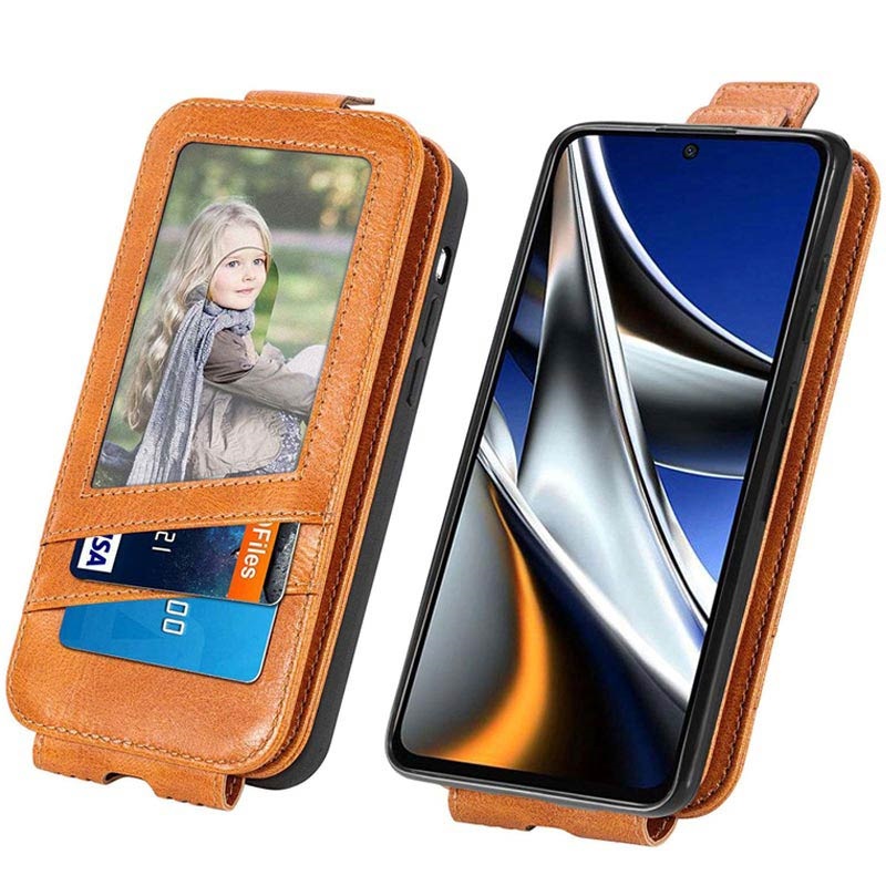 Lynlåslomme Xiaomi Poco X4 Pro 5G Vertikal Flip Cover - Brun