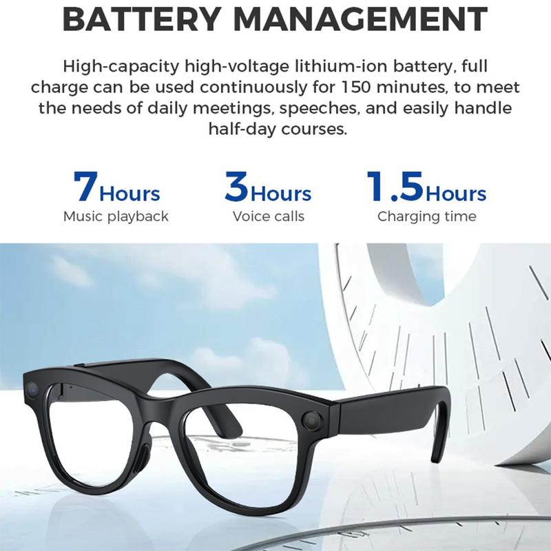 M01S AI-smartbrillerne blander intelligent oversættelse, HD-optagelse, fordybende lyd og stemmeinteraktion i én elegant bærbar enhed. Brillerne er udstyret med et Sony IMX219 500W-kamera og optager fotos i høj kvalitet og jævn 1080p 30fps-video. Uanset om du dokumenterer din dag eller optager håndfrit indhold, leverer M01S klarhed og stabilitet med indbygget videooptimering.