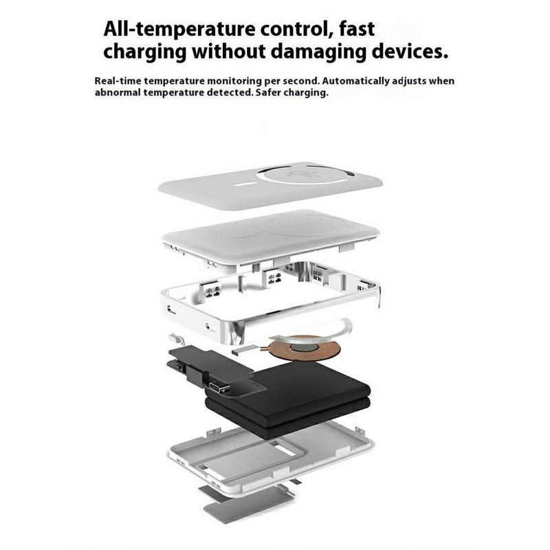 Med den nyeste Qi2-standard leverer M02A op til 15W trådløs hurtigopladning. Dens magnetiske fastgørelse holder din telefon sikkert på plads for effektiv og stabil strømforsyning.