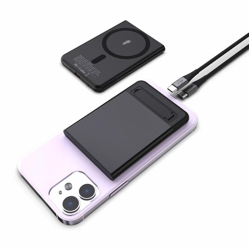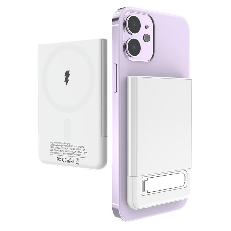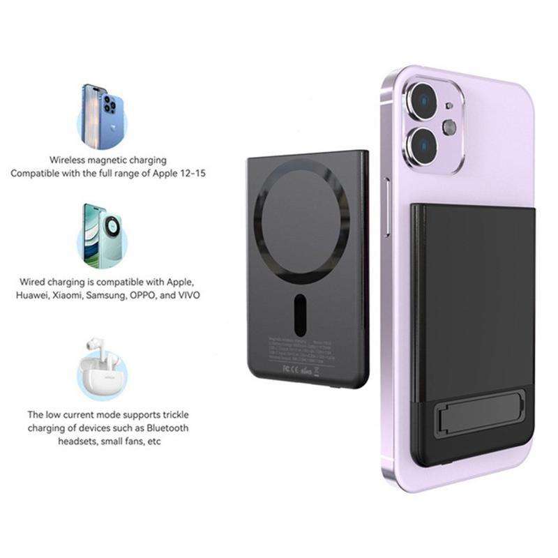 Ultratynd metal MagSafe trådløs oplader med kickstand til iPhone 12/13/14/15/16/17/Air - 15W/5000mAh