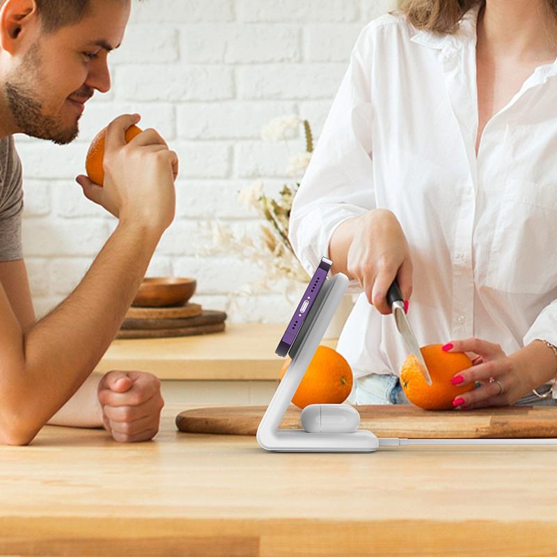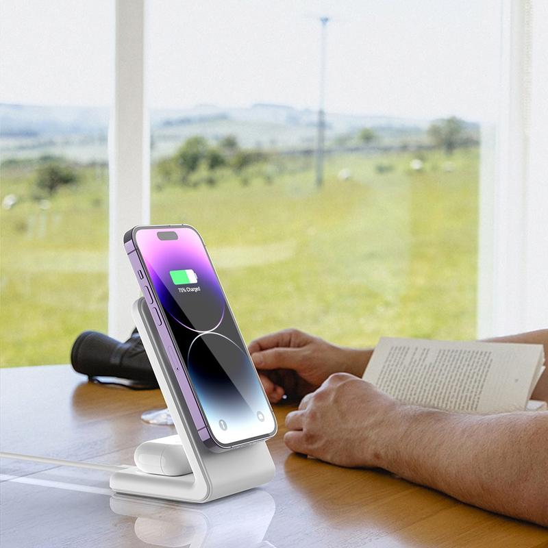 Gør din opladningsrutine enklere med M2A 2-i-1 magnetisk trådløs oplader, et slankt og kraftfuldt skrivebordstilbehør, der er designet til at holde din iPhone og AirPods opladet på samme tid. Med den præcise magnetiske justering, det lodrette design og de certificerede sikkerhedsstandarder er den den ideelle ledsager i hverdagen til brug i hjemmet, på kontoret eller ved sengen.