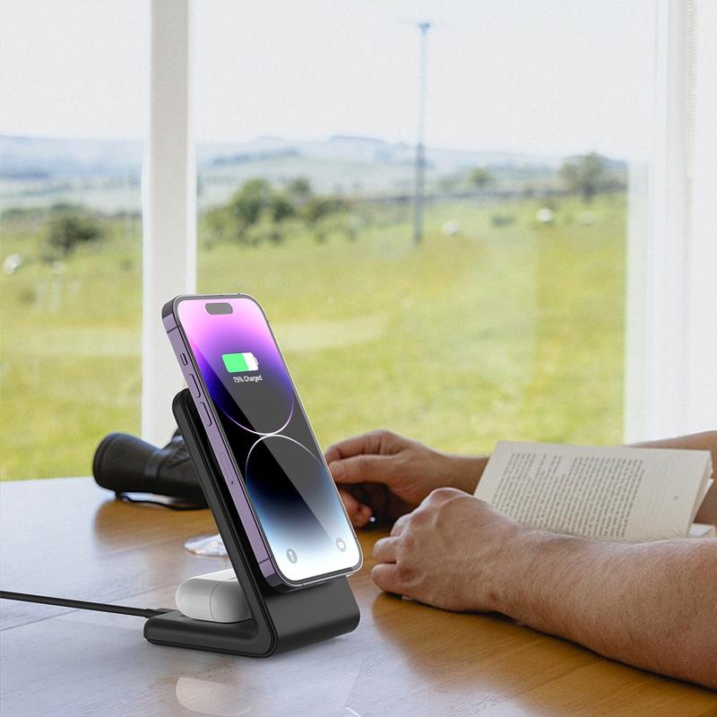 Gør din opladningsrutine enklere med M2A 2-i-1 magnetisk trådløs oplader, et slankt og kraftfuldt skrivebordstilbehør, der er designet til at holde din iPhone og AirPods opladet på samme tid. Med den præcise magnetiske justering, det lodrette design og de certificerede sikkerhedsstandarder er den den ideelle ledsager i hverdagen til brug i hjemmet, på kontoret eller ved sengen.