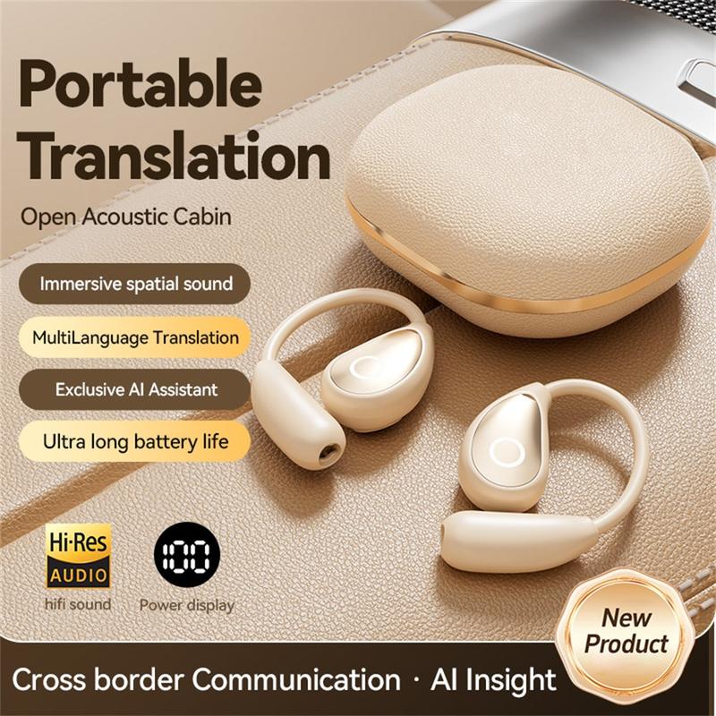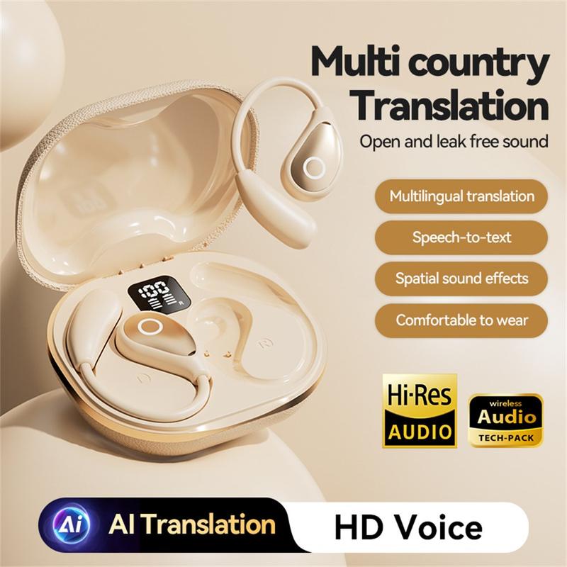 M95 Sportshøretelefoner med 144-sprogs AI-oversætter - Bluetooth 5.4-hovedtelefoner med ørekrog, digitalt batteridisplay