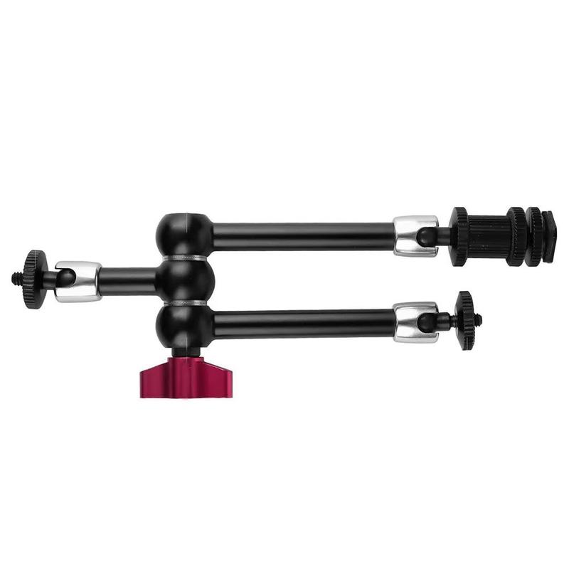Skab et mere fleksibelt optageopsæt med MA-03 11" tredobbelt armbeslag. Dette robuste magic arm-beslag er designet til fotografering, videooptagelse og indholdsproduktion og har 3 uafhængigt justerbare arme, der giver dig mulighed for at placere flere tilbehørsdele på samme tid. Det er en praktisk løsning til mere effektiv montering af skærme, mikrofoner, LED-lys og andet kameraudstyr.