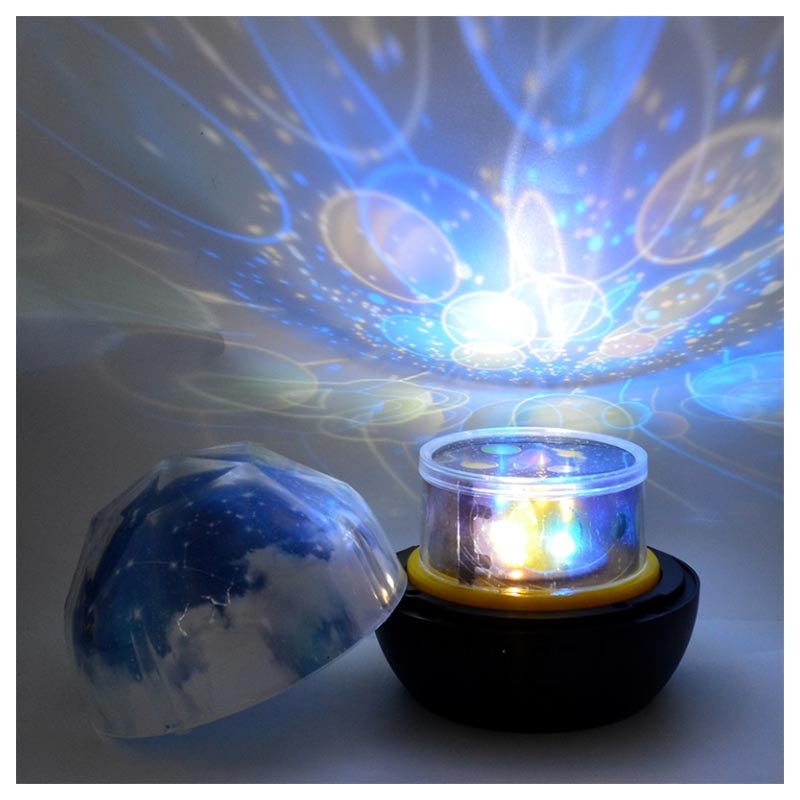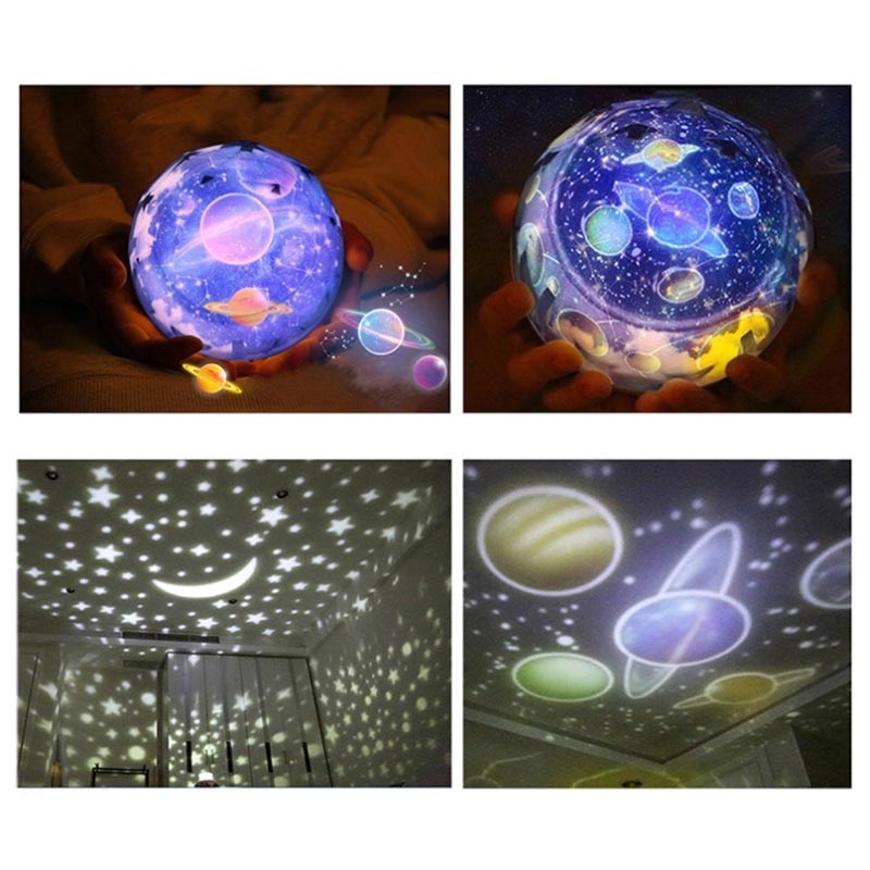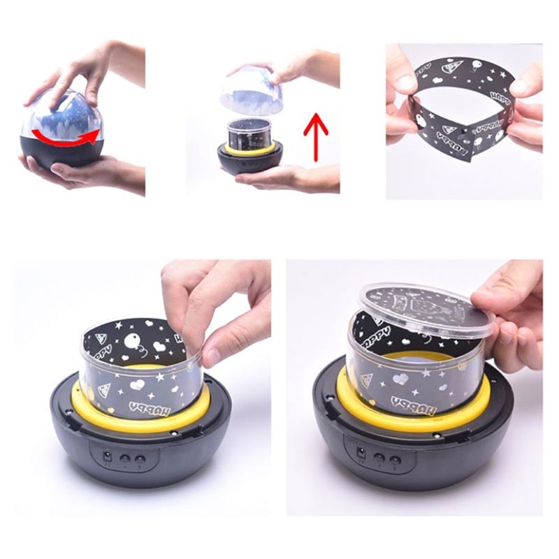 Udforsk universet med dine børn og lys deres værelse op med denne fantastiske lys projektor. Den smarte LED lampe projekterer fantastiske billeder i 360-graders udsyn på dine vægge og loftet. Du kan vælge mellem 5 forskellige skærm projektioner - universet, konstellation, stjerner og månen, livet i havet og fest. Du kan også vælge 1 af 6 farver alt afhængigt af dit humør og skab en smuk, romantisk atmosfære i dit hjem. Når du fjerner skærmfilmen, kan projektoren bruges som nattelys.
