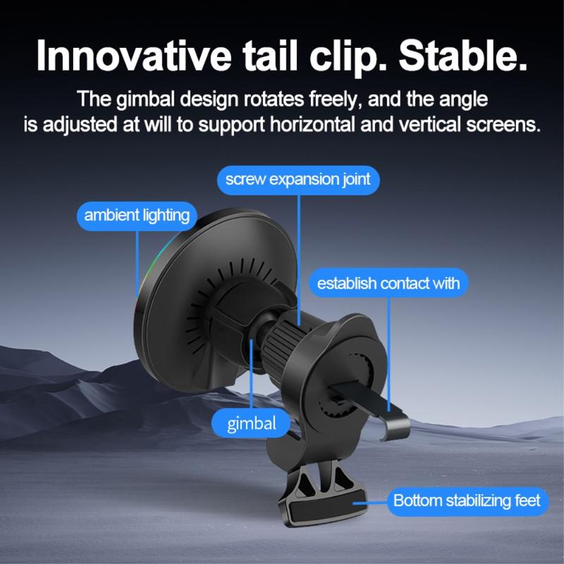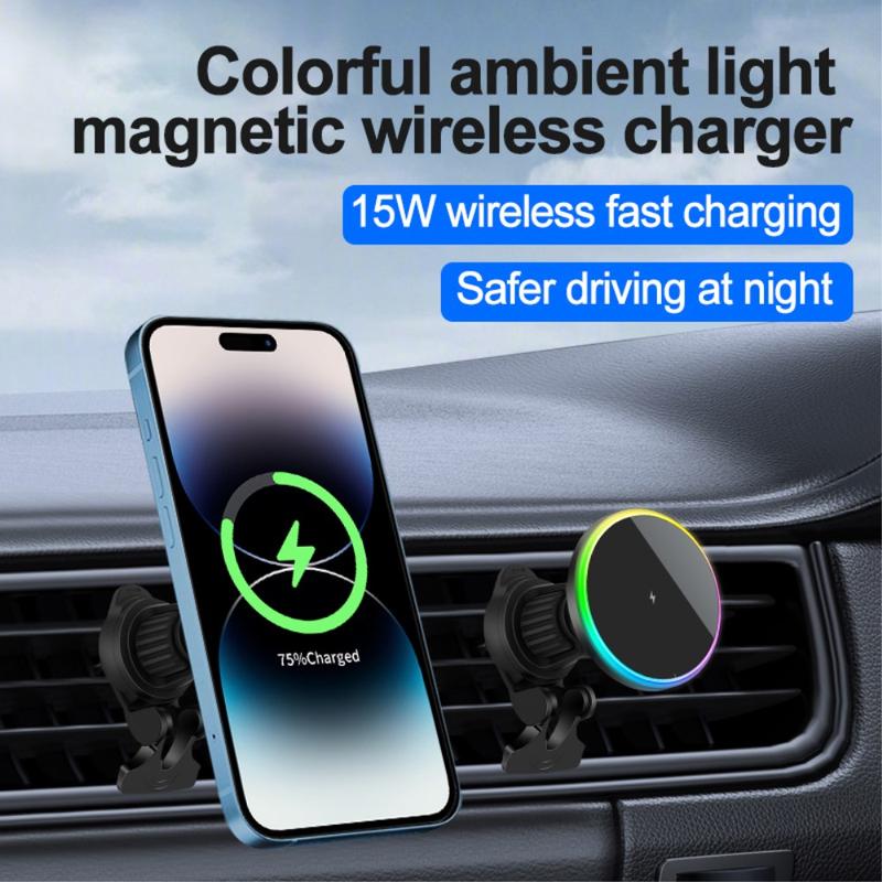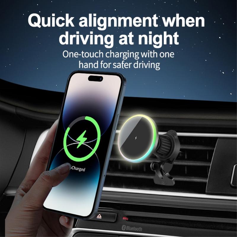 Magnetisk trådløs oplader/luftventilationsholder til bil m. RGB OJD-121