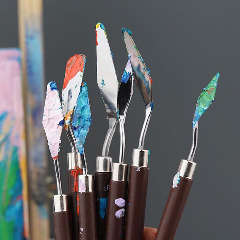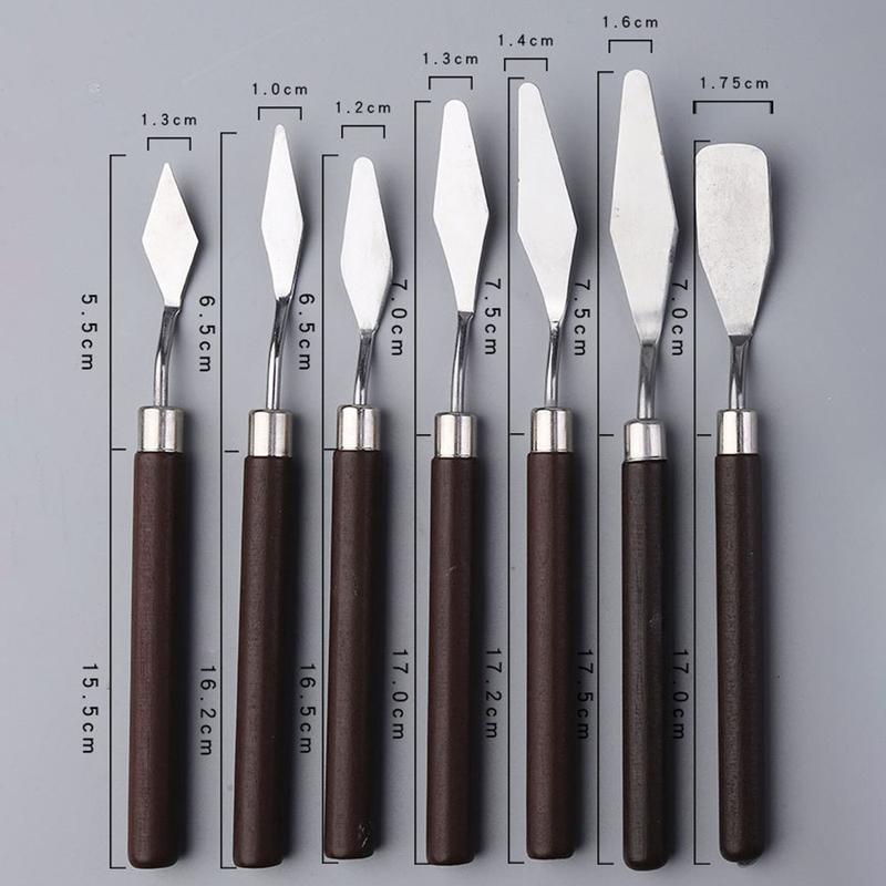 7 forskellige oliemaleriskrabere i ét sæt, praktisk at bruge
