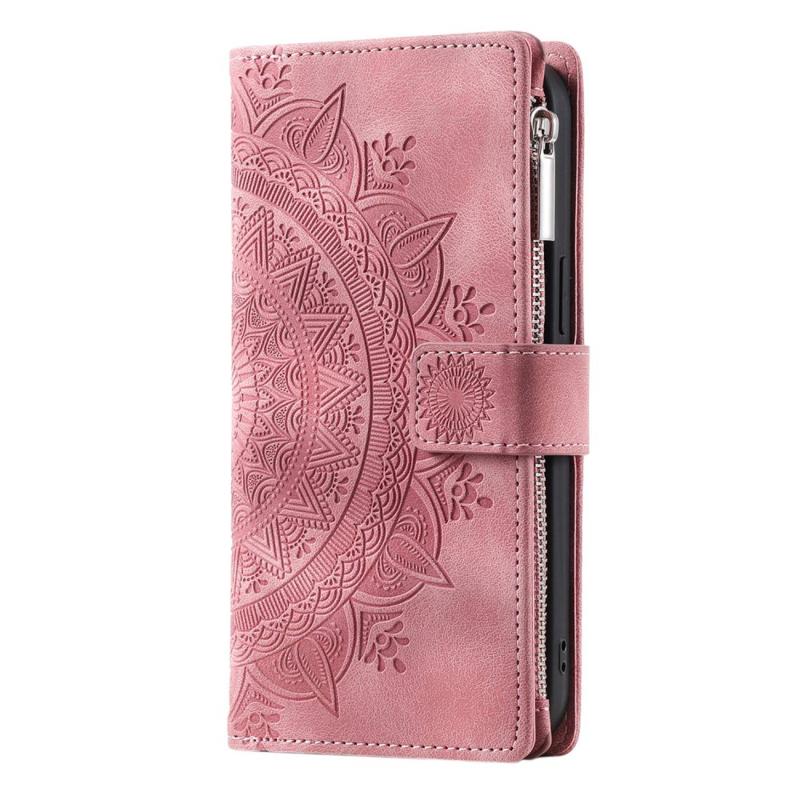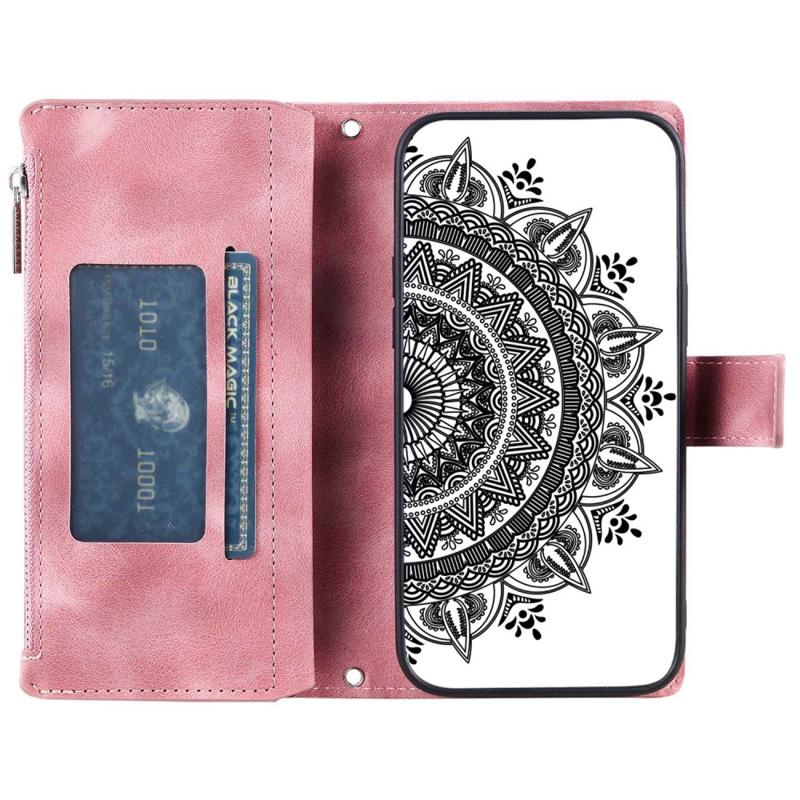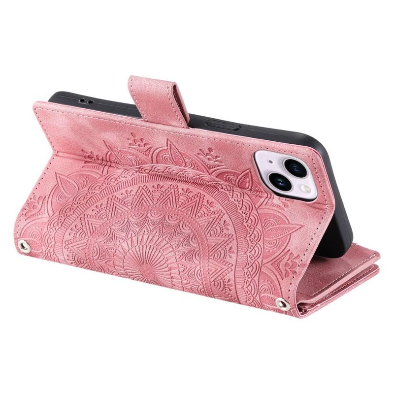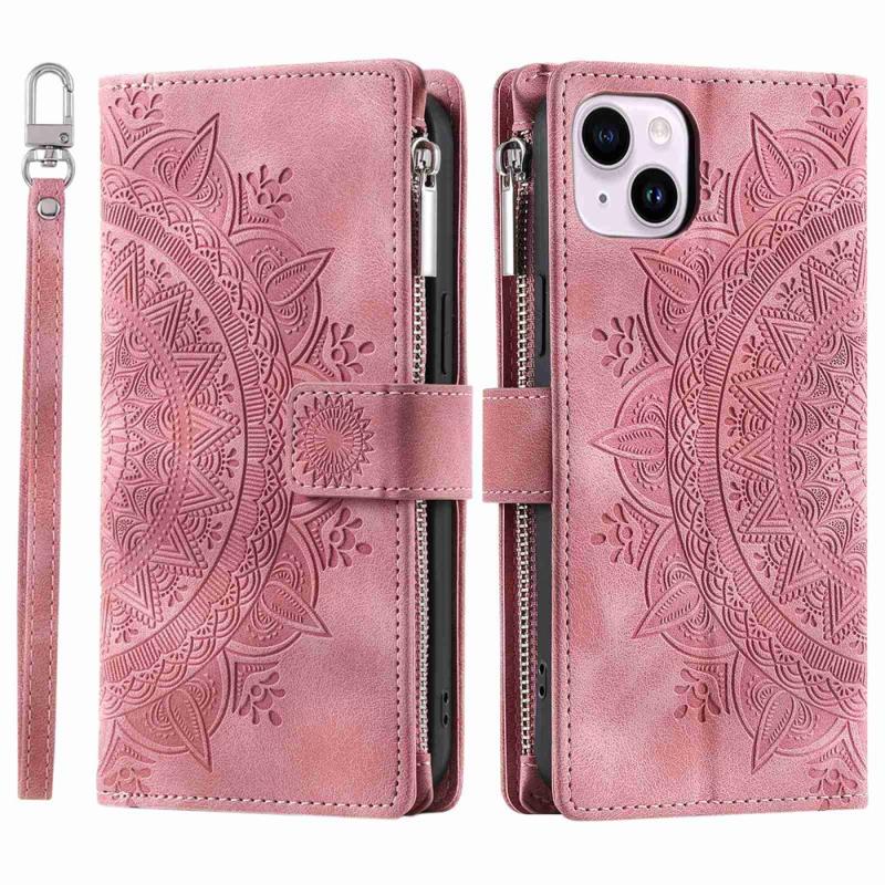 Telefonskal til iPhone 14 Plus, Anti-ridse Mandala Flower Imprinted PU Læder Cover Stand med flere kortpladser Lynlås lomme lommebog etui