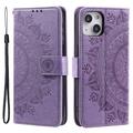 iPhone 14 Mandala Series Etui med Pung - Lilla