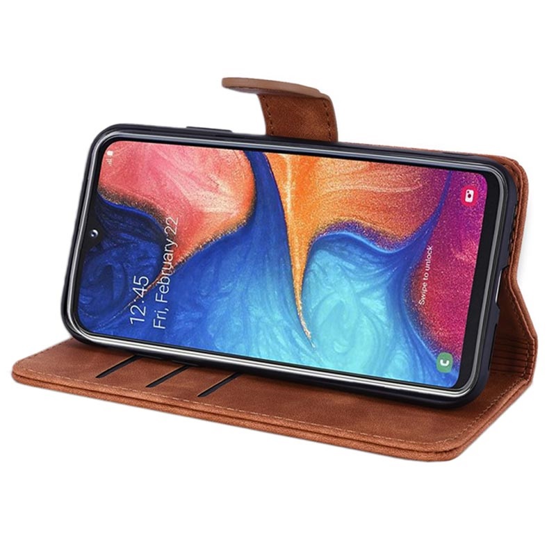 Den unikke pung beskytter Samsung Galaxy A50 mod hverdagens ridser og stød og virker også som stativ til video. Pungen har indvendig rum til kort og en større lomme til kontanter, så du kan opbevare alle dine værdigenstande samme sted.