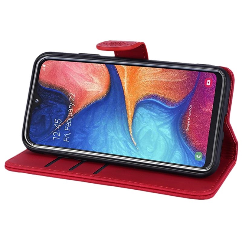 Den unikke pung beskytter Samsung Galaxy A50 mod hverdagens ridser og stød og virker også som stativ til video. Pungen har indvendig rum til kort og en større lomme til kontanter, så du kan opbevare alle dine værdigenstande samme sted.