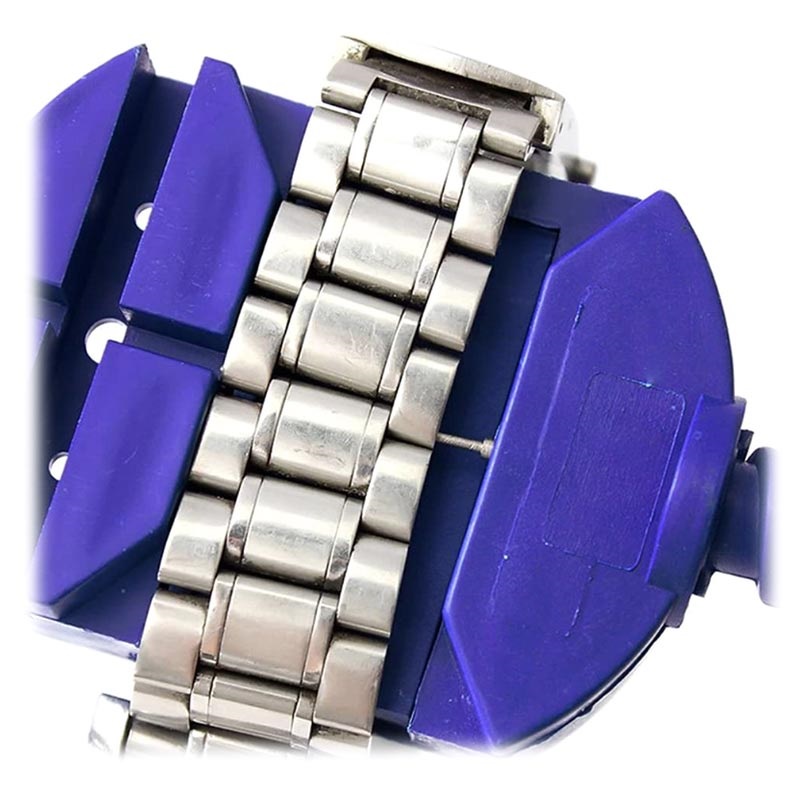 - Virker ved at skubbe stifter ud af urkæden og justere armbåndet