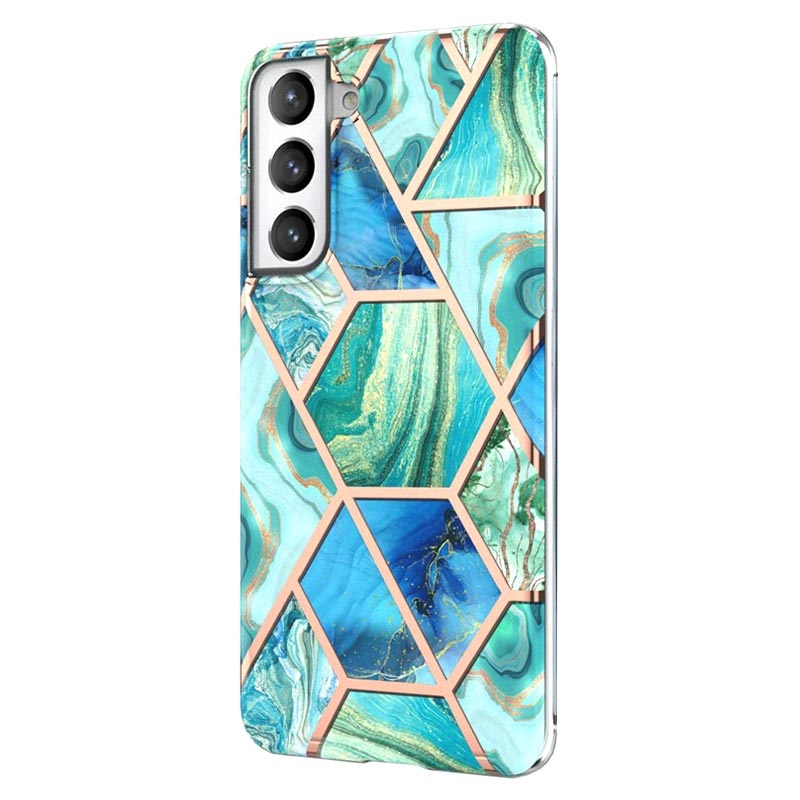 Marmormønster Galvaniseret IMD Samsung Galaxy S21 FE 5G TPU Cover - Grøn / Blå
