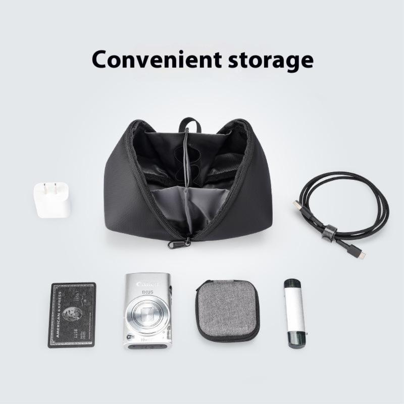 MARK RYDEN MR54 Storage Bag er en let og holdbar løsning til at organisere og beskytte dit digitale tilbehør. Den er fremstillet af ultralet Oxford-stof med polyesterforing og modstår ridser og slitage, samtidig med at den beskytter dit udstyr. Flere rum giver dig mulighed for at opbevare kameraer, kabler, opladere og andre 3C-enheder, så du altid har nem adgang. MR54 tech pouch er kompakt og bærbar og passer perfekt i rygsække eller bagage, hvilket gør den perfekt til rejser, pendling eller organisering i hjemmet.