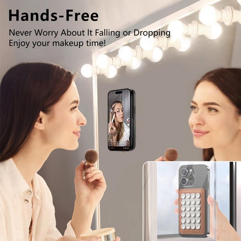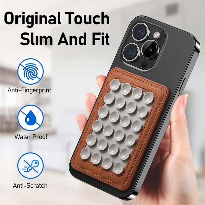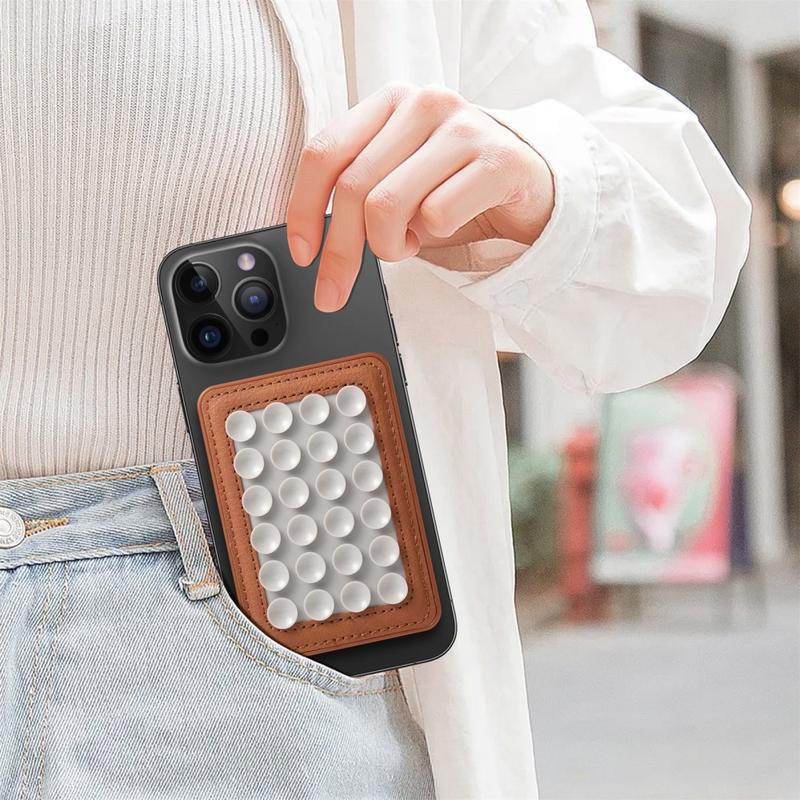 - Kombinationen af magnetisk kraft og sugning øger stabiliteten ved at fordele vægten mere jævnt over telefonens bagside.
