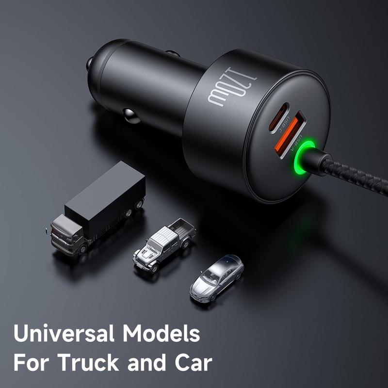 En kompakt adapter erstatter et virvar af separate ledninger og underdrevne klodser. Med to porte og to faste ledninger kan hver enhed i bilen trække præcis den wattstyrke, den har brug for - ingen langsom strøm, ingen kabeljagt, ingen spildtid på servicestationer.