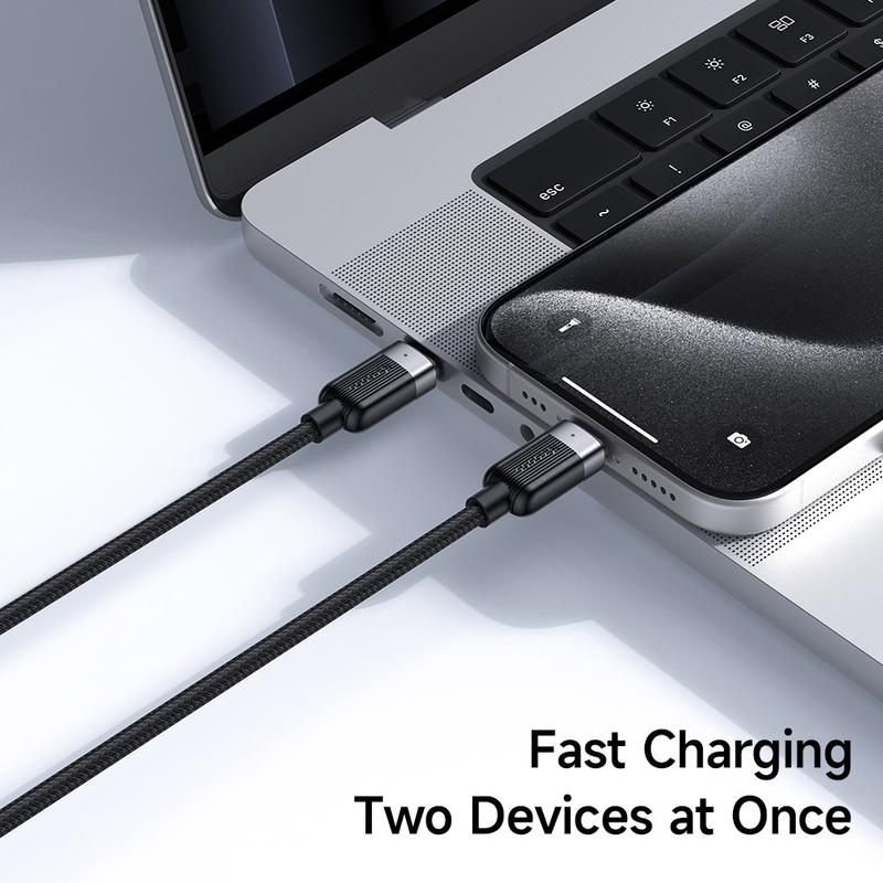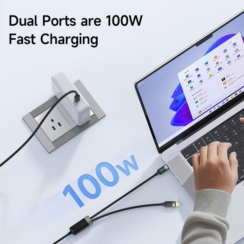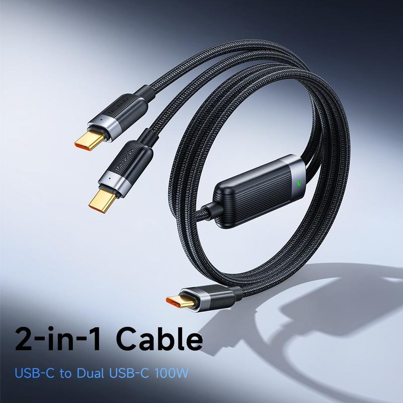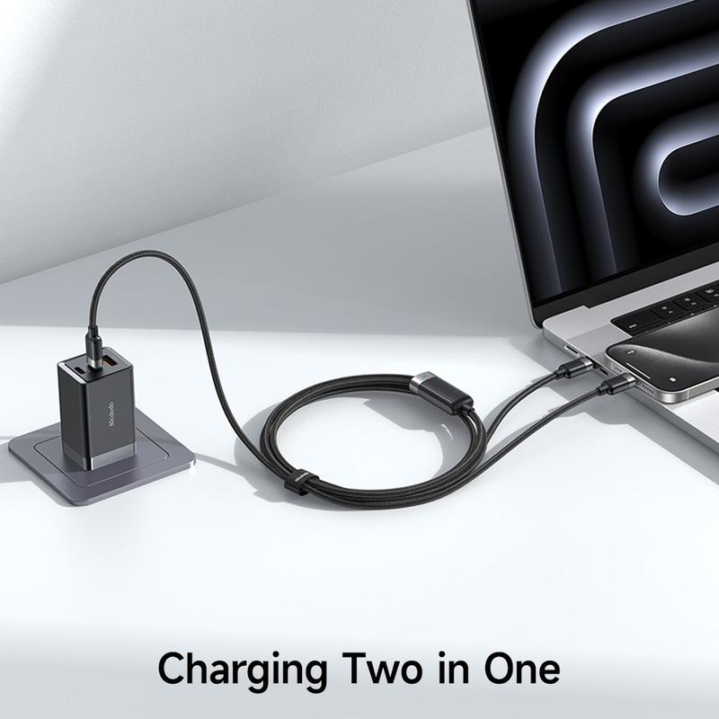 Er du træt af at jonglere med separate ledninger til din bærbare computer og telefon? Dette dobbelthovedede MCDODO-kabel strømliner livet på farten. To USB-C-stik forgrener sig fra en enkelt, robust flettet kappe, hvilket giver dig frihed til at hurtigoplade to enheder eller køre et kraftværk med den fulde 100 W-specifikation - ingen adaptere, intet besvær.