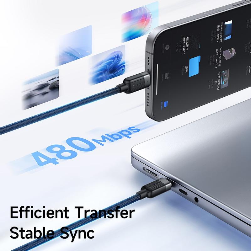 Slip for rod, oplad hurtigere, og rejs lettere. Med universelle USB-C-hoveder og automatisk strømstyring fremtidssikrer dette kabel din opsætning og sparer dig for udgifterne til ekstra ledninger. Den forstærkede fletning klarer slagene fra pendling, reducerer e-affald og sparer penge over tid.