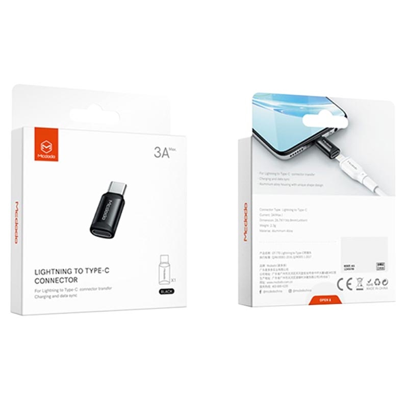 Mcdodo OT-7700 er adapteren der lader dig forbinde dit Lightning-kabel til USB-C enheder. Den understøtter 3A Fast Charge, så du kan genoplade din enhed hurtigt såvel som overføre data. Den har også indbygget farvekodning, den matcher sikker strøm på intelligent vis og beskytter din enhed.