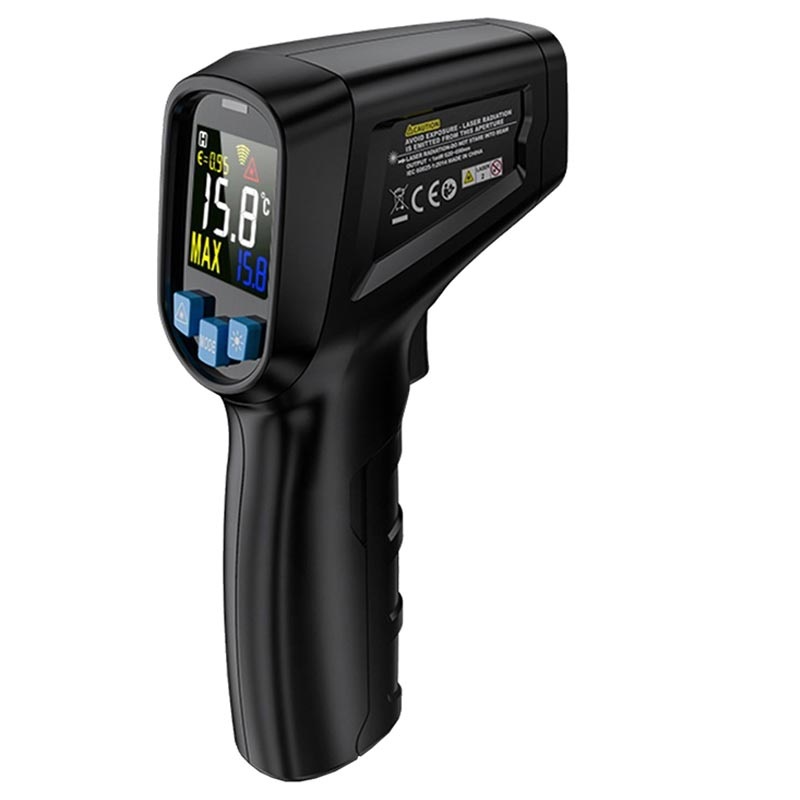 Dette Mestek IR03A termometer er et kontaktfrit, digitalt termometer, som kan måle adskillige objekter: varme og farlige ting, eller objekter der er svære at nå uden kontakt. Takket være den kontaktfrie tilstand, er den sikker og praktisk at bruge til måling. Dette håndholdte, infrarøde termometer hjælper dig med at måle objekter der er svære at nå ind til, uden at du skal bruge mange kræfter.