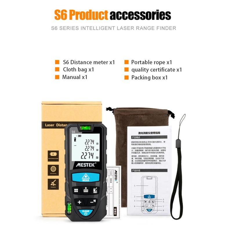 Mød MESTEK S6 laserafstandsmåler: et hurtigt, alsidigt og brugervenligt digitalt måleværktøj, der er designet til både professionelle og gør-det-selv-entusiaster. Med vinkelmåling i realtid, højdemåling med et enkelt tryk og en række forskellige målefunktioner er S6 bygget til at forenkle beregninger af afstand, areal og volumen. Dens holdbare konstruktion, lyse display og kompakte størrelse sikrer optimal ydeevne, uanset om du er på byggepladsen, i et klasseværelse eller arbejder på en renovering af hjemmet.