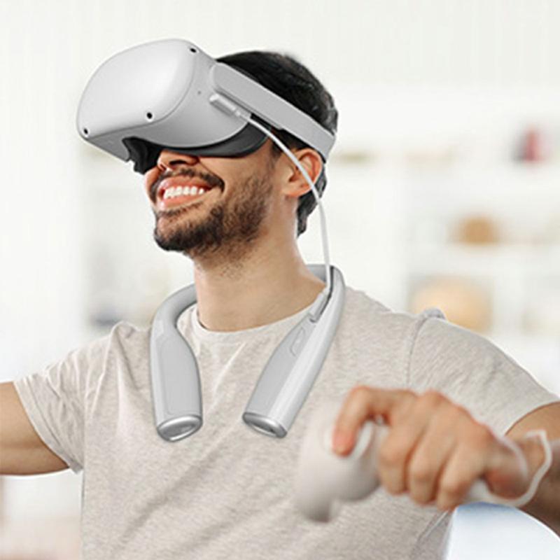 - Ergonomisk design med nakkeholder: Bærbar nakkeoplader designet til komfort under lange VR-sessioner, der fordeler vægten jævnt for en behagelig oplevelse.