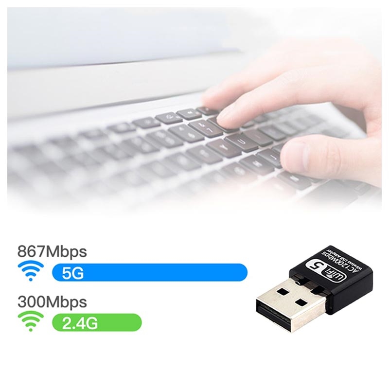 Mini Dual Band Trådløs USB Adapter til PC, Bærbar - 2.4GHz (300Mb/s), 5GHz (867Mb/s), USB 2.0