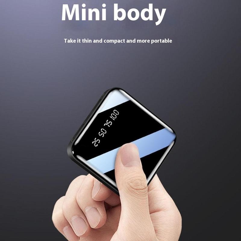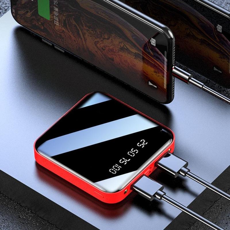 - Mini powerbank med spejllignende overflade og LED-display