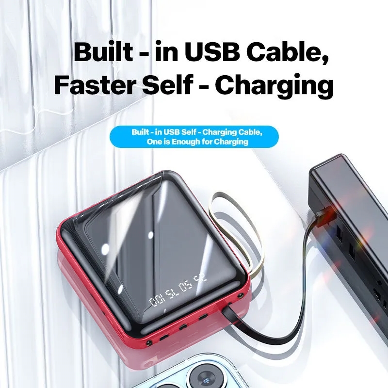Genoplad enhver enhed med denne mini powerbank! Den er designet med Lightning, Type-C og MicroUSB kabler og to USB outputs - universel kompatibilitet.