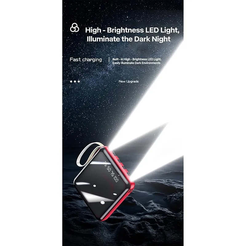 Mini Powerbank 20000mAh med 2x USB Porte og Lightning, USB-C, MicroUSB Kabel - 2A