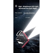 Denne lommevenlige powerbank har også tre inputs, microUSB og USB-C porte, samt et indbygget USB-kabel. Den er perfekt til camping, fordi den har en stor kapacitet på 20000mAh og to lommelygter. Den spejllignende overflade med digitale LED-numre viser strømniveauet.