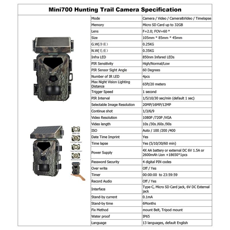 Mini700 20MP 1080p infrarødt sporkamera / natkikkert, vildt- og jagtspejder