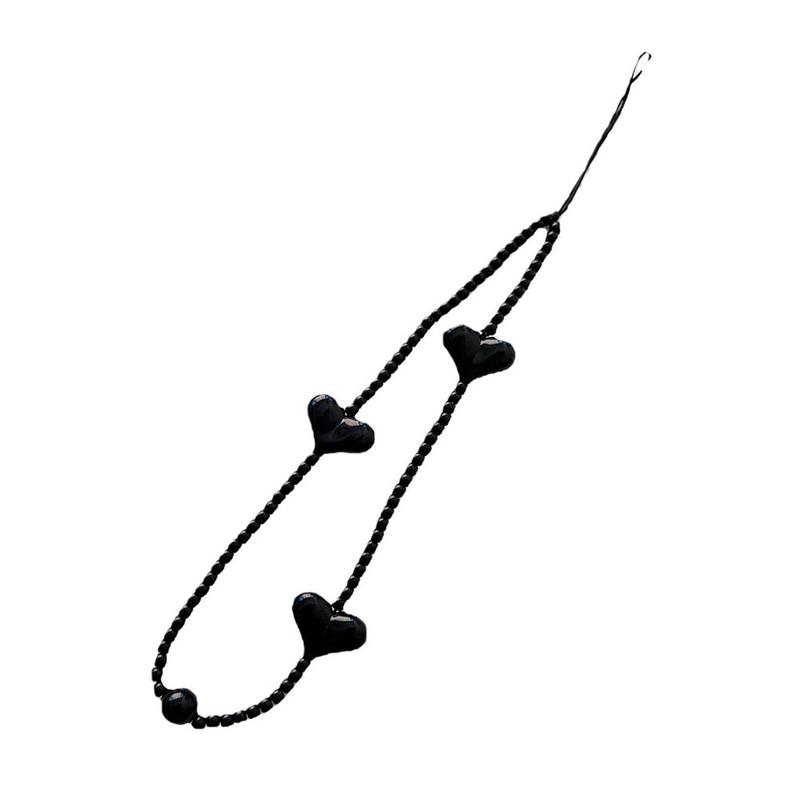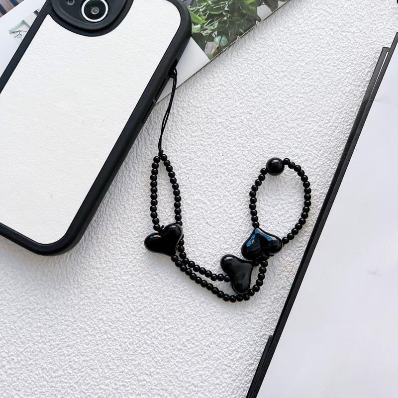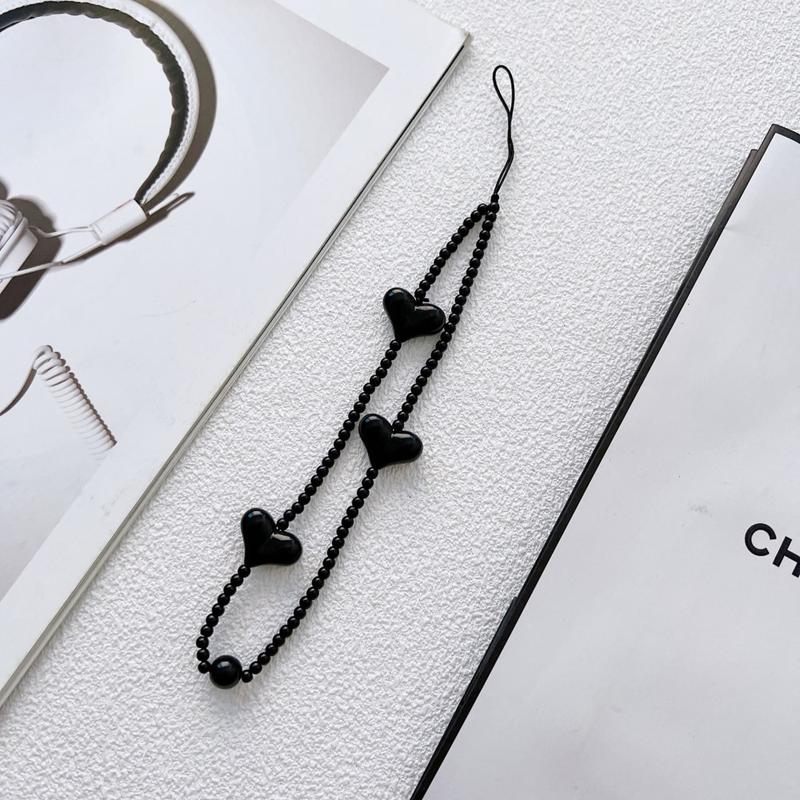Giv din telefon et legesygt og stilfuldt pift med denne 23.5cm lange telefonrem med hjerteformede perler. Den er designet med blanke, sorte hjerteformede akrylperler og fungerer både som et dekorativt tilbehør og en praktisk håndledsrem til daglig brug.