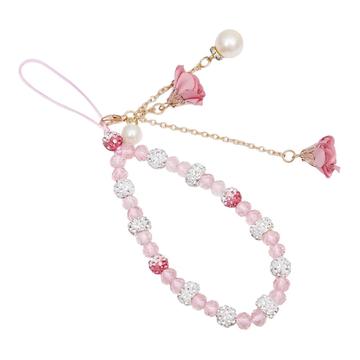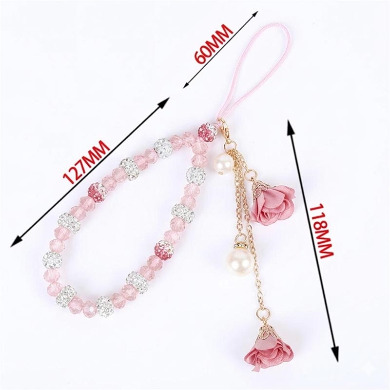 18,7 cm lang telefonrem med krystalperler og rosenvedhæng - håndledsrem og håndkæde til mobiltelefon