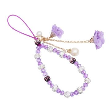 Mobilrem med rosenblomstvedhæng og krystalperler - Lilla