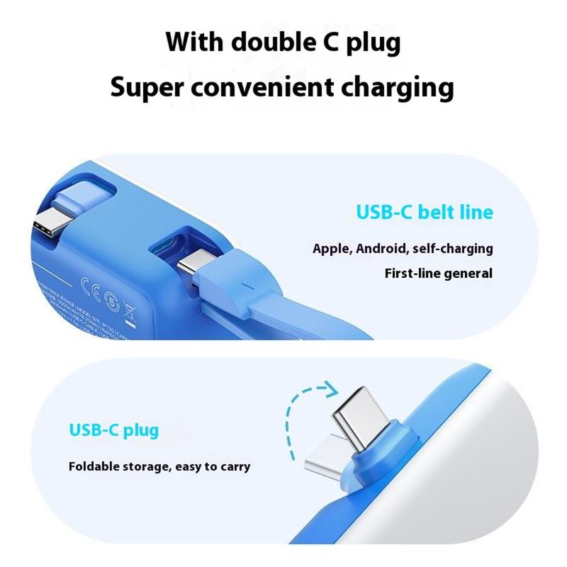 - 5000 mAh genopladelig batterikapacitet, der giver stabil strøm til smartphones, tablets eller hovedtelefoner