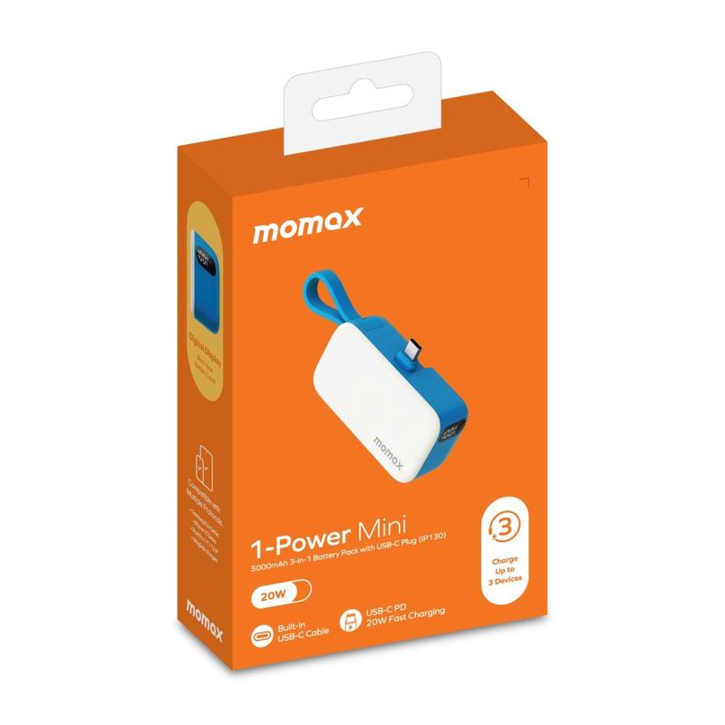 Momax 1-Power Mini Pop Art 5000mAh Power Bank / Bærbar oplader med USB-C-stik, USB-C-kabel, USB-C-port - 20W