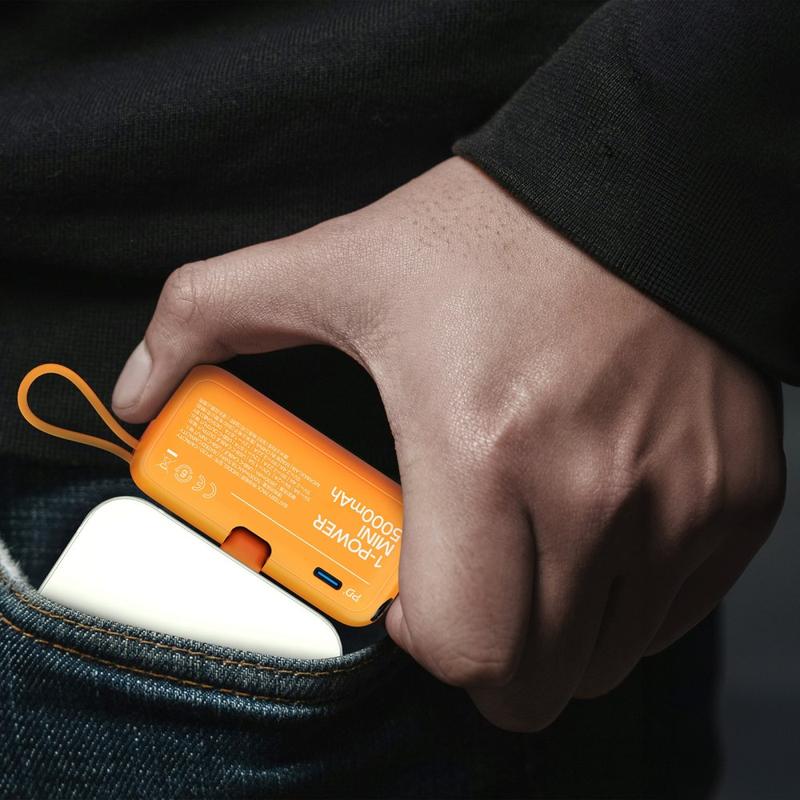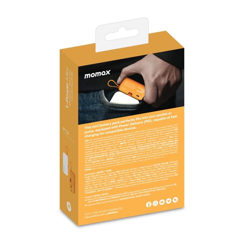 Momax 1-Power Mini Pop Art 5000mAh Power Bank / Bærbar oplader med USB-C-stik, USB-C-kabel, USB-C-port - 20W