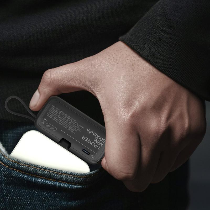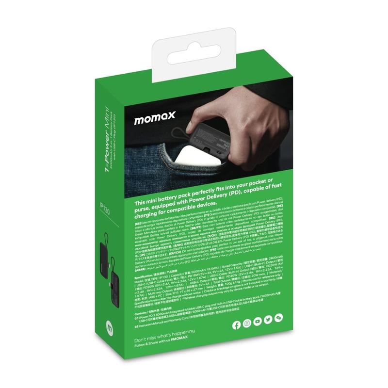 Momax 1-Power Mini Pop Art 5000mAh Power Bank / Bærbar oplader med USB-C-stik, USB-C-kabel, USB-C-port - 20W