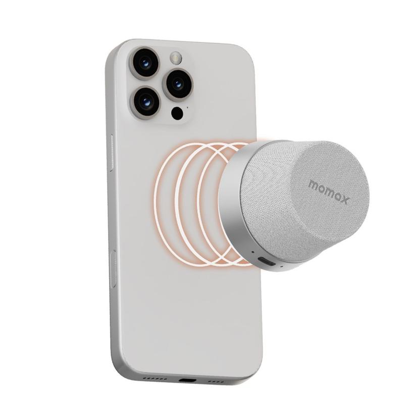 Momax 1-Vibe Go BS6 magnetisk mini Bluetooth-højttaler og telefonholder - Sølv