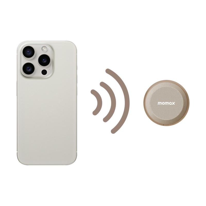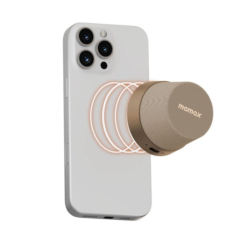 Momax 1-Vibe Go BS6 magnetisk mini Bluetooth-højttaler og telefonholder, 360° lyd og IPX6 vandtæt