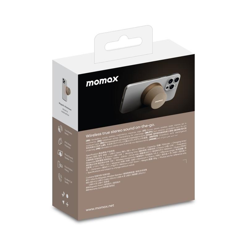 MOMAX 1-Vibe Go BS6 magnetisk mini Bluetooth-højttaler er en kompakt, alsidig lydløsning designet til daglig underholdning derhjemme eller på farten. Dens ultra-mini magnetiske design kombinerer en bærbar trådløs højttaler med en praktisk telefonholder, så du nemt kan nyde musik, videoer og opkald. Udstyret med en kraftig 40 mm driver og 360° lydudgang leverer den fordybende lyd i en overraskende lille form, mens IPX6-vandmodstand gør den velegnet til daglig brug i forskellige miljøer.