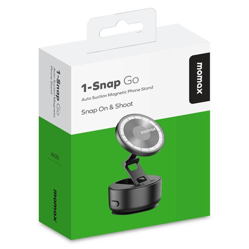 Monter din telefon hvor som helst på få sekunder - uden lim, klemmer eller besvær. MOMAX KH20 1-Snap Go kombinerer motoriseret vakuumsugning med en kraftig magnetisk telefonholder, der giver dig et rent og sikkert greb på glatte overflader som spejle, glas, skriveborde, køleskabslåger og bilruder. Den elektriske sugekop justerer intelligent trykket for et stærkere greb, mens den forbliver lydløs, og N52-magneten lader din telefon klikke på plads med det samme uden besværlig justering.