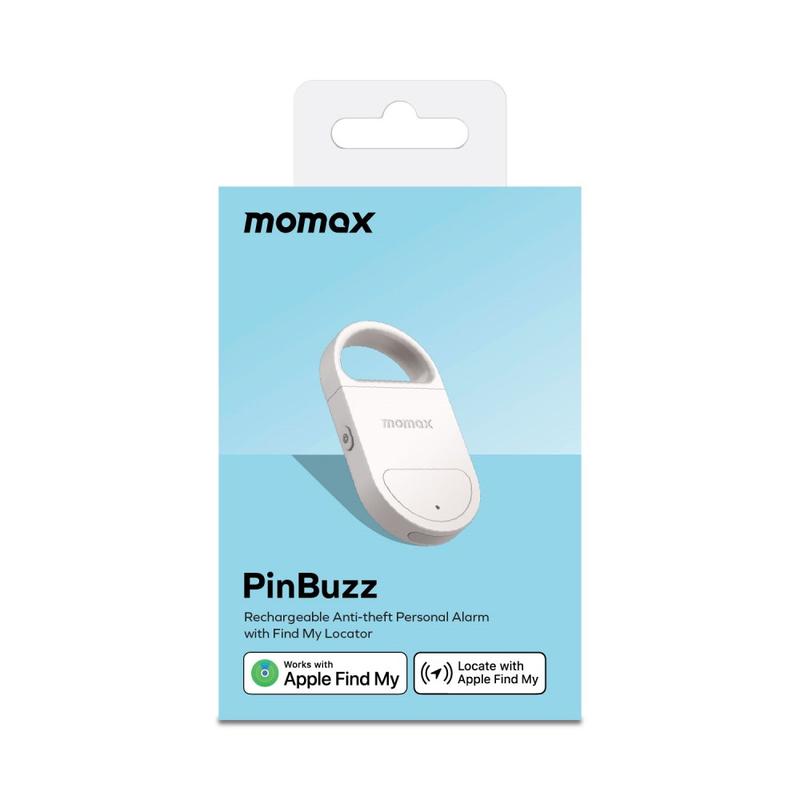 Momax PinBuzz genopladelig personlig sikkerhedsalarm - Apple Find My compatible - Hvid