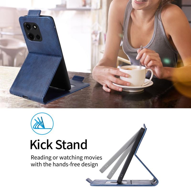 Motorola Edge (2025) Vertical Flip Leather Wallet Case kombinerer stil og funktionalitet. Det er fremstillet af førsteklasses syntetisk læder med en slidstærk TPU-inderskal og giver omfattende beskyttelse af din enhed, samtidig med at det ser elegant ud.