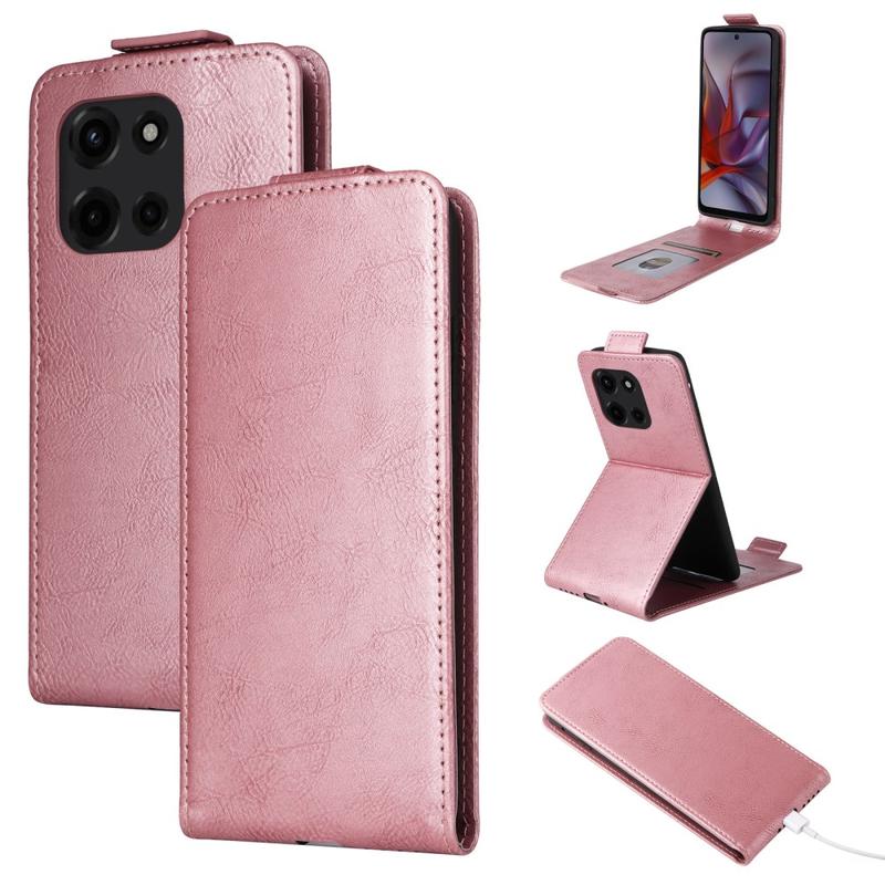 Motorola Edge (2025) lodret flip-etui med stativ - rosaguld